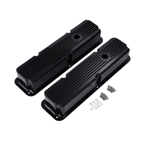 Cubierta de válvula con aletas altas de aluminio fabricado en negro con orificio para motores BBF Big Block Ford FE 352-428 Hot Rod Parts