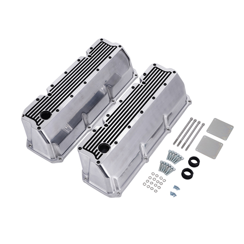 Cubierta de válvula de aluminio con aletas altas fabricada pulida con orificio para varillas de calle de motores BBF Big Block Ford FE 352-428